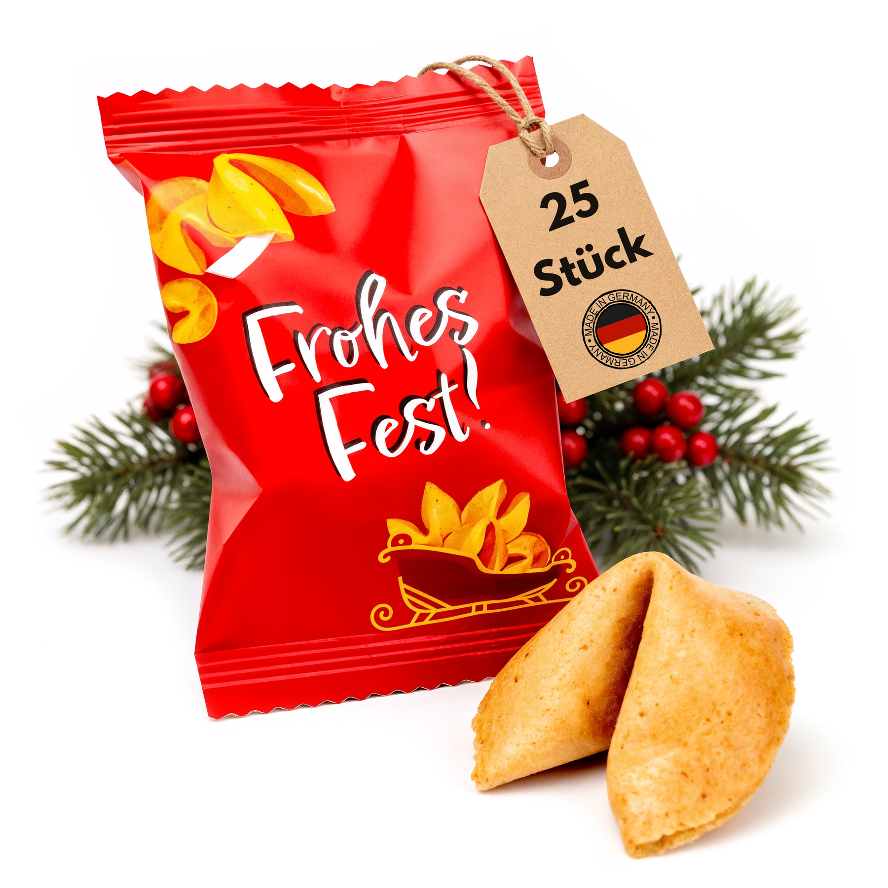 💬 Besinnliche Sprüche & herzliche Komplimente – Die 25 einzeln verpackten Glückskekse enthalten charmante Botschaften: witzige Weisheiten, liebevolle Komplimente und festliche Sprüche – auf Deutsch und Englisch.